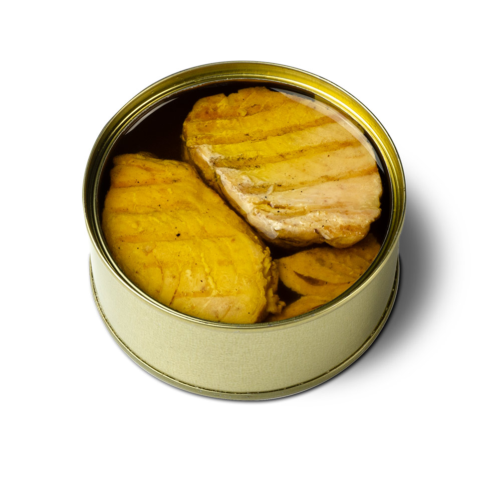 Discover our exclusive selection of gourmet preserves with our grilled tuna, meticulously crafted from the exquisite Thunnus alalunga, cooked to perfection over glowing coals and then carefully packed in extra virgin olive oil to preserve its unparalleled freshness and quality. Experience gastronomic pleasure with our canned preserves.
